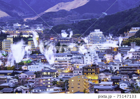 大分県別府市 鉄輪温泉 湯けむり展望台から見た夕景