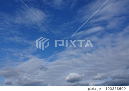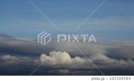 青空と多様な雲が現れた清々しい夕方の空・春・広角・空限定・230318pm