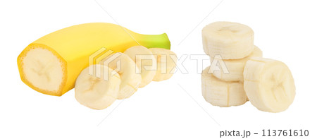 banana pieces isolated on white background with full depth of field.