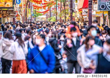 日本の横浜都市景観 オミクロン株が世界を震撼。師走の横浜中華街はまるでコロナ禍前、驚愕の人流=4日