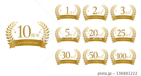 ゴールドローレルリースバッジセット 周年記念 1〜100周年 ベクター