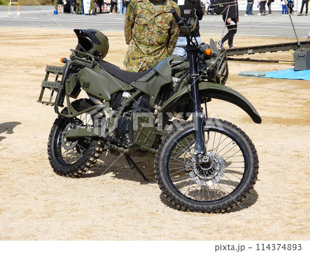 訓練展示に参加する陸上自衛隊偵察隊のオートバイ