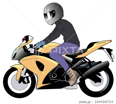 黄色い大型バイクに乗る人【ライダー・単車・横向き・バイク乗り・イエロー・オートバイ・ツーリング】