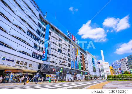 日本の東京都市景観6月22日。 池袋駅東口などを望む