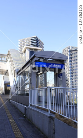 東京・豊洲市場の最寄り駅、ゆりかもめの市場前駅2A出口、エスカレーターが設置