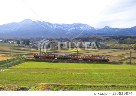 雄大な北アルプスを背景に疾走するえちごトキめき鉄道455・413系電車_2025/11/23撮影