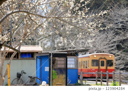 小湊鐵道「梅の花咲く飯給駅」ローカル列車を背景に