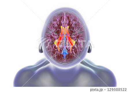 Human brain with highlighted caudate nucleus, 3D illustration. A deep gray matter structure involved in motor control, learning, memory, and reward-related behavior.