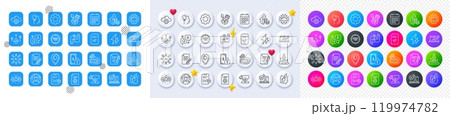 Idea, Tips and Cloud computing line icons. Square, Gradient, Pin 3d buttons. AI, QA and map pin icons. Pack of Electricity, Checked file, Technical documentation icon. Vector