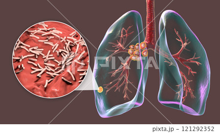 Primary lung tuberculosis with the Ranke complex, 3D illustration
