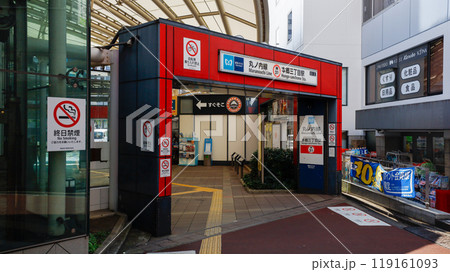 名古屋市瑞穂区都市風景 環状線の里桜並木と名古屋市営地下鉄 桜山駅3番 出入口