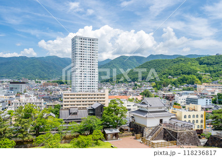 甲府城 天守台からの眺め 北北東 稲荷櫓 二重の石垣跡 甲州夢小路