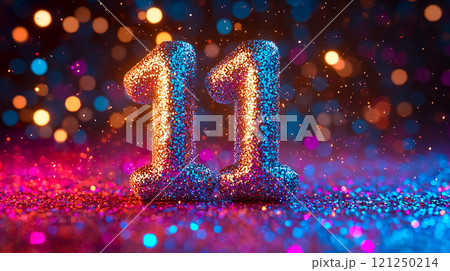 キラキラ煌めくカラフルなグリッターでデコレーションされた数字の11