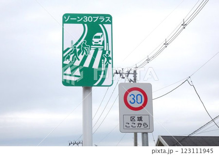 道路標識 生活道路に立つゾーン30プラスの標識