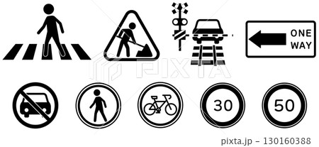 交通標識アイコンセット 横断歩道 工事中 一方通行 鉄道踏切 速度制限