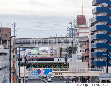 荒川土手から見た鹿浜橋(東京都足立区)と荒川の風景