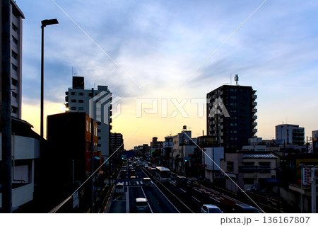 夜の環七通りの交通 環状7号線の夜景【交通イメージ】