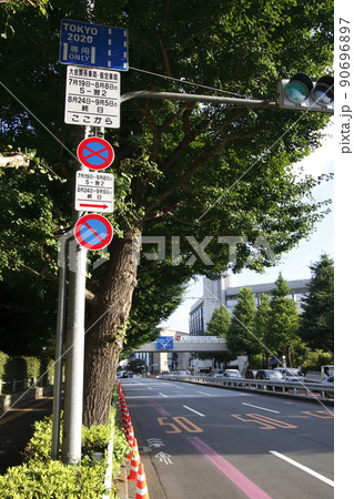 東京の道と道路標識・国道17号線が東京都道319号線と交差する本郷弥生交差点付近・縦位置