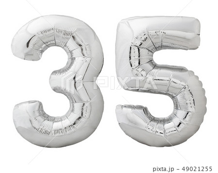 Silver number 35 thirty five made of inflatable balloon isolated on white