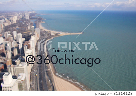 ジョンハンコックセンター展望台「360シカゴ」からの眺望 ガラス窓文字入り アメリカ