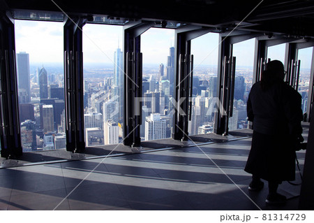 ジョンハンコックセンター展望台「360シカゴ」からの眺望と観光客 アメリカ