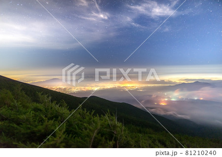 富士山登山!元祖七合目山口山荘から、御殿場市の街明かり( 静岡県富士宮市)※作品コメント欄に撮影位置