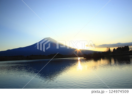 精進湖から見た美しい富士山