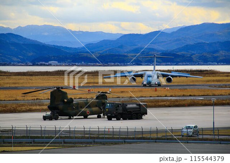 美保基地の国産大型輸送機【C-2】と大型輸送ヘリ【CH-47】