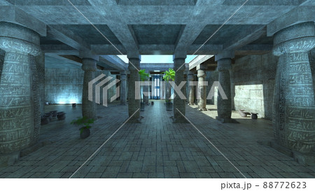 無数の黄色い立方体に囲まれた空きスペース 斜め視点 3DCG