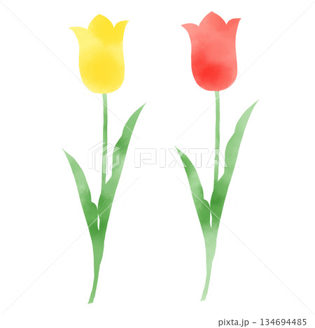 水彩風 赤と黄色のチューリップのイラスト 春の花・植物のデザイン素材