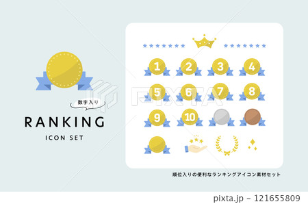 手描き風の番号とかわいいランキングとメダルの素材セット