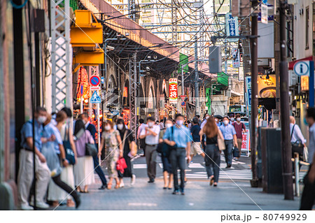 日本の東京都市景観4166人過去最多。五輪“狂行”中、新橋の飲み屋街は…=8月4日、夕方