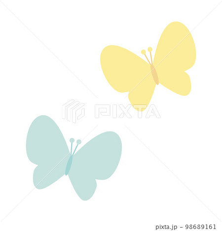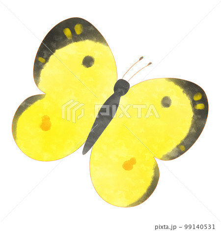 飛ぶモンシロチョウとモンキチョウのセット 春の昆虫の絵本風手描き厚塗りイラスト素材集