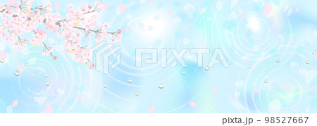 春の水面に浮かぶ桜の花の水彩イラスト背景