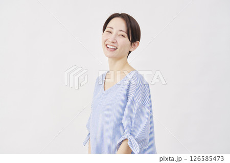 ミドルエイジの女性のポートレート 白背景 カメラ目線