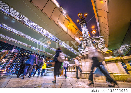 日本の東京都市景観いざ!…仕事などを終え、日本橋を行き交うビジネスマンや…ウーマンら…新時代へ