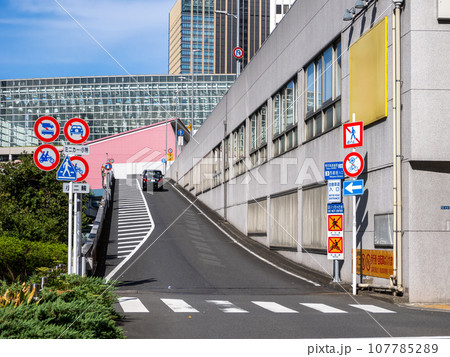 東京高速道路 土橋入口の歩行者・自転車進入禁止を示す規制標識