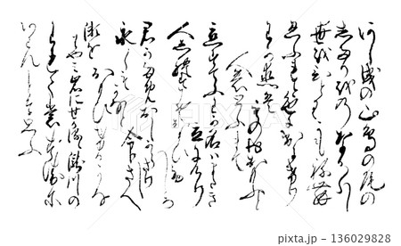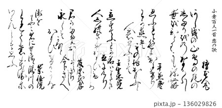 古い時代のくずし文字、肉筆の百人一首「恋の歌」5首