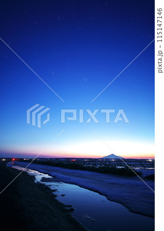 早春のサロベツ原生花園からオリオン座の三つ星を臨む