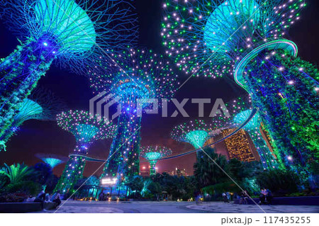 スカイウェイとガーデンズバイザベイの夜景