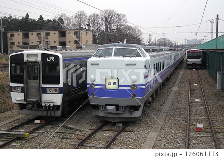 特急型485系の回送列車と上越線115系電車