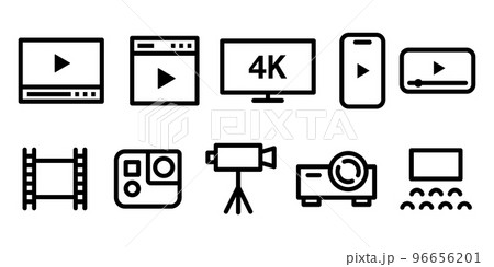 ビデオ動画再生ボタンのアイコン複数セットイラスト白黒