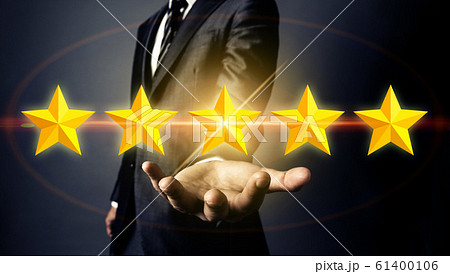 黄色の5つ星を持っている人の手のイラスト - 評価・口コミ・レビューのイメージ素材