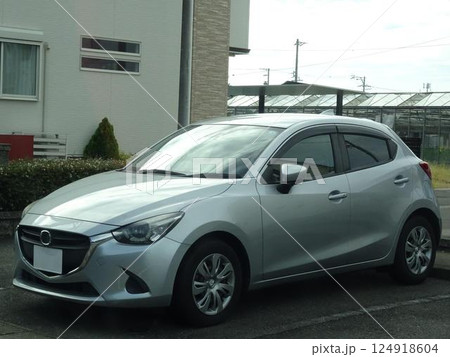 駐車場に停めた車 (マツダ・デミオ 4代目)