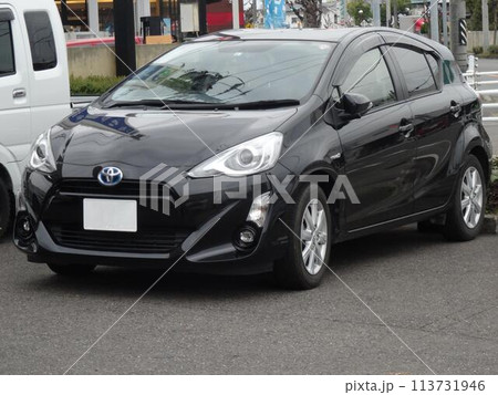 駐車場に停めた車 (トヨタ・アクア 初代)