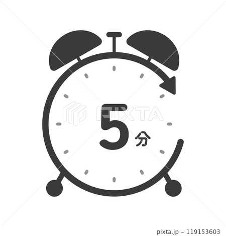 5分の文字とベルが付いたシンプルな置き時計のアイコン - 残り時間や5分間のタイマーのイメージ素材
