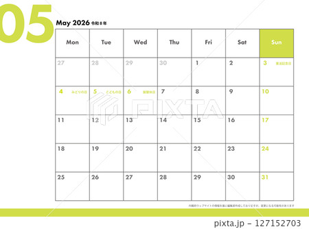 月曜始まり卓上カレンダー令和8年 2026年5月 ビジネス向け シンプルカレンダー素材