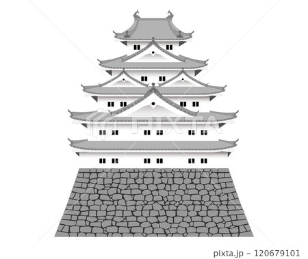 日本の城 五重五階の天守の白黒シルエットイラスト
