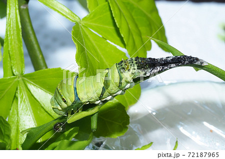 ナミアゲハ(アゲハ)の幼虫(4から5齢へ脱皮中)