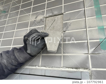 交換するタイルのカッター入れ